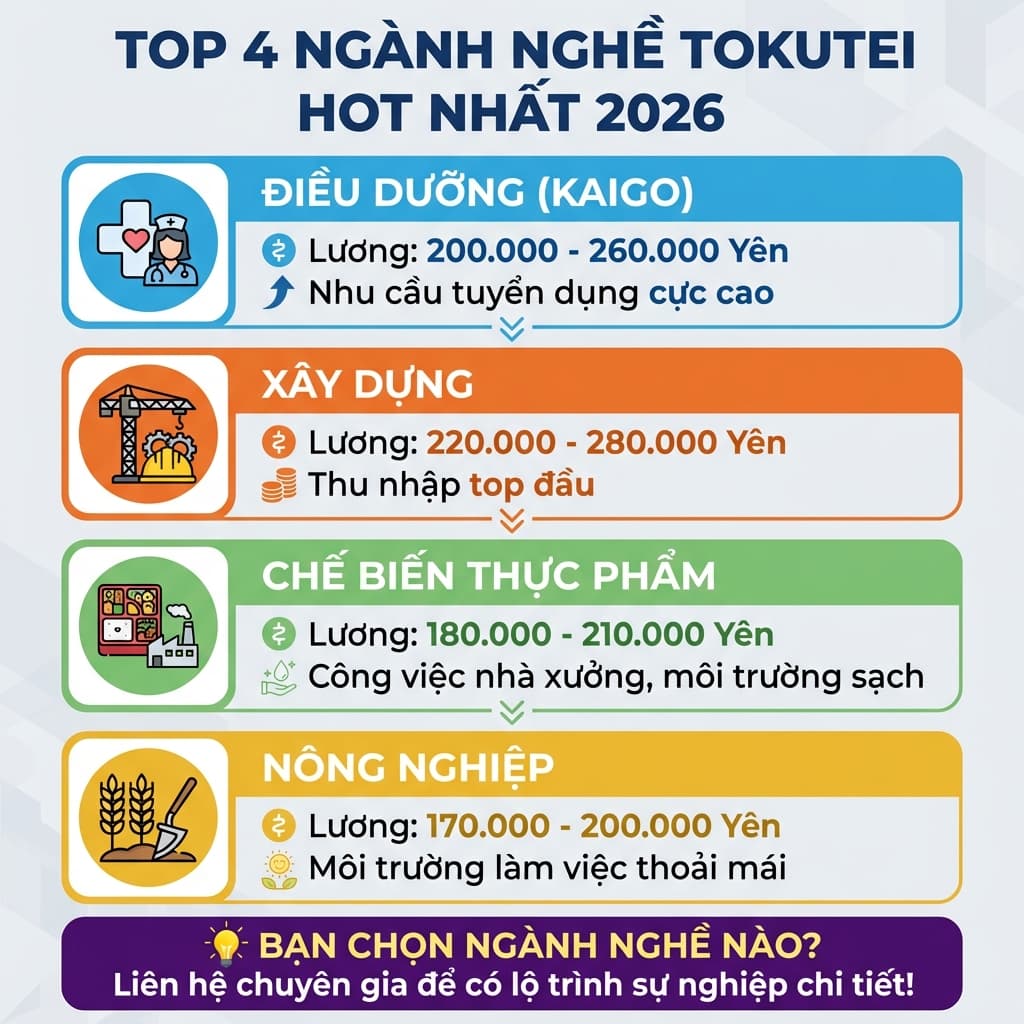3. Top các ngành nghề Tokutei có thu nhập cao nhất 2026