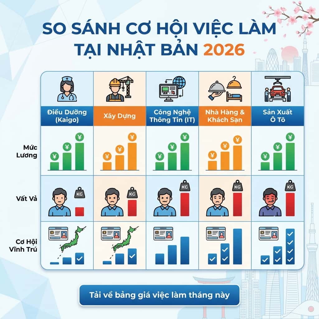 Việc chọn đúng ngành hot đi nhật 2026 không chỉ quyết định số tiền bạn gửi về hàng tháng mà còn là "tấm vé" quyết định bạn có thể ở lại Nhật lâu dài (Visa Tokutei 2) hay không.